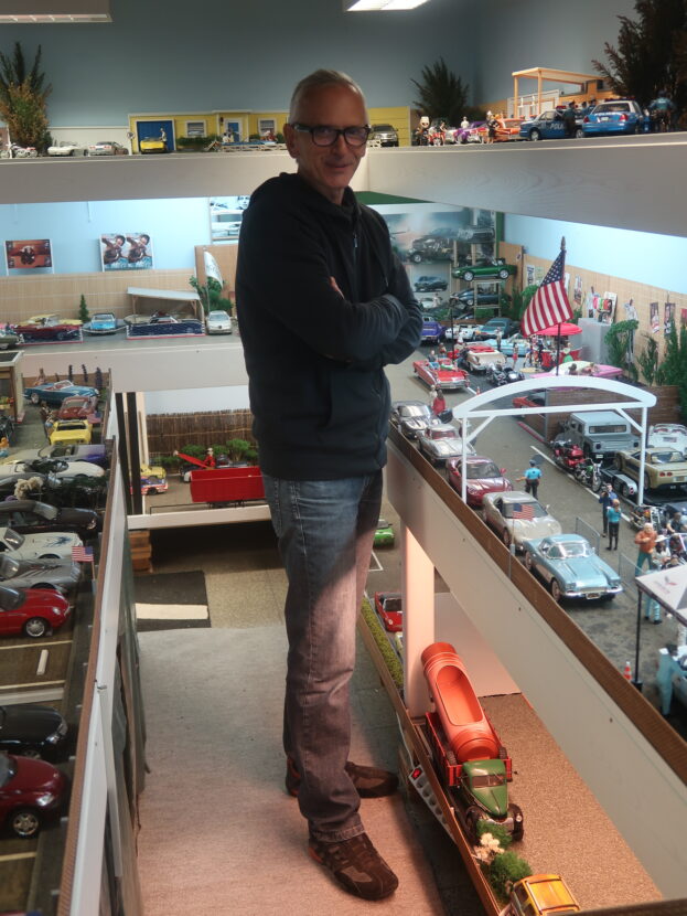 Bereits seit den 80er Jahren sammelt der Bastler US-Modelle im Maßstab 1 : 18, was zu der Zeit noch schwierig war weil hierzulande nur die gängigen Modelle Corvette und Mustang angeboten wurden. Ergänzt wurde die Sammlung zunächst bei Verkaufsständen u.a. bei unseren American Car Nationals auf dem Esso-Gelände in Köln-Niehl und auf Reisen in die USA. Das und alte Hollywood-Filme haben den Ausschlag ergeben für ein lebenslanges Hobby. Inzwischen hat Mainhard genug Zeit und kann die Dioramen weiter perfektionieren.