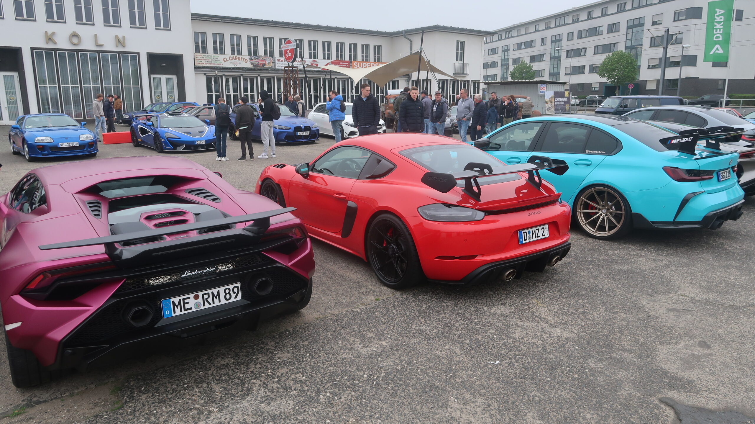 Für Speedkings ist das hier längst nicht alles. Auf rechtzeitige Anfrage stand die MW Eventhalle zur Verfügung – hier gab es nochmals an die 50 Top Racer aus Italien, England, Deutschland der letzten Jahre zu bestaunen, wer es denn mag. Die Ausnahme bildete ein alter Mercedes-Benz 300 SL Roadster  (1954-1963) in Ground-Up Restoration (Handelspreis mind. 1 Million €) aus dem Rhein-Sieg Kreis. Und ja auch einige moderne US-Muscle-Cars waren drinnen wie draußen zu sehen.